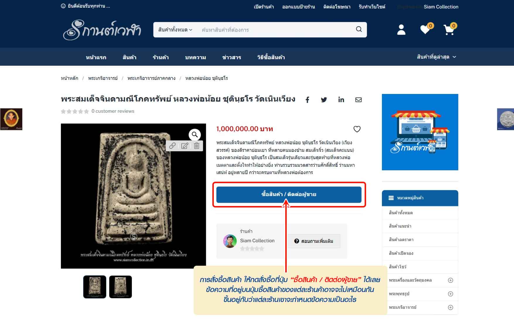 การสั่งซื้อสินค้า ให้กดสั่งซื้อที่ “ปุ่มใต้รายการสินค้า” ได้เลย ข้อความที่อยู่บนปุ่มซื้อสินค้าของแต่ละร้านค้าอาจจะไม่เหมือนกัน ขึ้นอยู่กับว่าแต่ละร้านเขาจะกำหนดข้อความเป็นอะไร